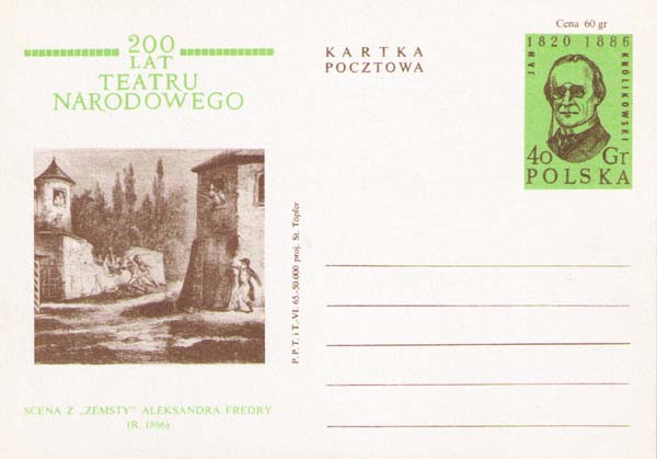 На карточке: сцена из спектакля «Месть» по пьесе Александра Фредро (1866).