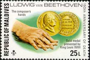 Руки Бетховена, памятная медаль, подаренная ему Людовиком XVIII с профилем короля.