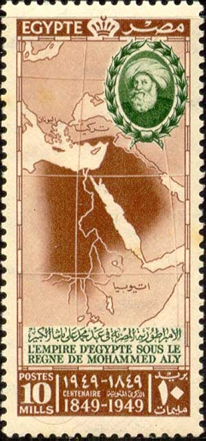 Египет, 1949, 10 m. П. высокая. 11 (1/2) х 11. коричневая и зеленая