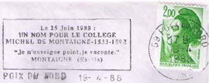 Пуа-дю-Нор. В пользу колледжа Мишеля де Монтеня. Цитата из «Опытов» Монтеня (машинный).