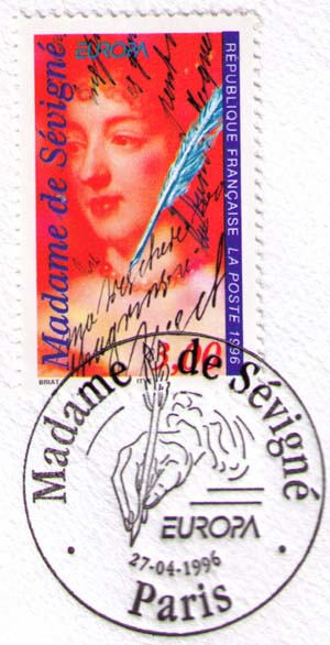 Париж. Первый день марки М3148. Рука с пером, памятный текст.