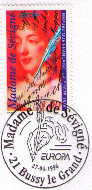 Бюсси-ле-Гранд. Первый день марки М3148. Рука с пером, памятный текст.