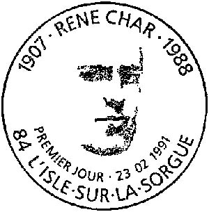 Л'Иль-нсюр-ла-Соргю. Первый день марки М2824. Портрет Рене Шара.