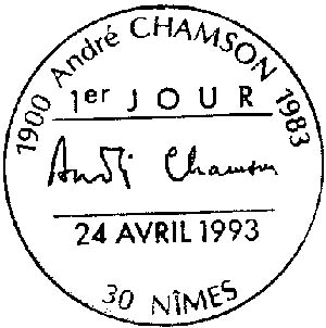 Ним. Первый день марки М2952. Факсимиле Андре Шамсона.