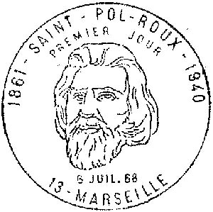 Марсель. Первый день марки М1629. Портрет Сен-Поля Ру.