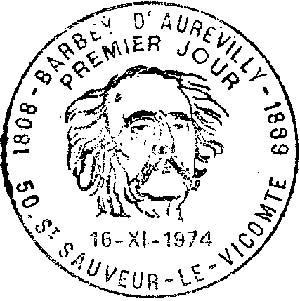 Сен-Сове-ле-Викомт. Первый день марки М1896. Портрет Жюля Барбе д'Оревильи.