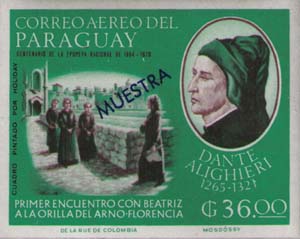 Портрет Данте (Джотто ди Бондоне, деталь фрески «Страшный суд», 1334, Ассизи, Капелла Св. Магдалины Нижней церкви), «Встреча Данте и Беатриче» (Генри Холлидей, 1883, Ливерпуль, Галерея искусств Уокер, фрагмент).