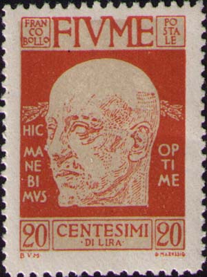 Фиуме, 1920, 20 Cmi. П. глубокая. 11 (1/2). оранжевая и охра