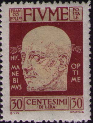Фиуме, 1920, 30 Cmi. П. глубокая. 11 (1/2). красно-коричневая и охра