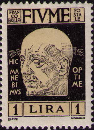 Фиуме, 1920, 1 L. П. глубокая. 11 (1/2). черная и охра