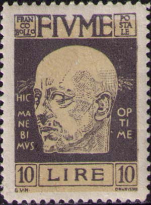 Фиуме, 1920, 10 L. П. глубокая. 11 (1/2). фиолетово-серая и охра