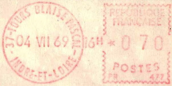 Эндр и Луара. Дорога Блеза Паскаля. На штемпеле надпись «Tours Blaise Pascal» (календарный).