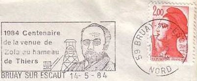 Брюэ-сюр-л'Эско. 100-летие приезда Эмиля Золя в деревушку Тьер. Шахты, портрет Эмиля Золя.