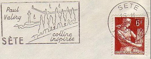Сет. Надгробие Поля Валери на кладбище у моря в Сете. Поль Валери был похоронен на кладбище в его родном Сете — на том же кладбище, о котором идет речь в знаменитом стихотворении «Кладбище у моря» (машинный).
