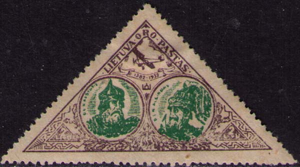 Литва, 1933, 2 L. П. высокая. 14 (1/4) и б/з. серо-фиолетовая и зеленая