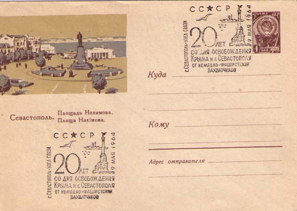 Площадь Нахимова в Севастополе. В центре — памятник Павлу Нахимову (скульптор Николай Томский, 1959).