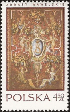 Гобелен с инициалами короля Сигизмунда II Августа (1543—1567, Краков, замок Вавель).